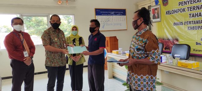 KARANGANYAR – Penyerahan Bantuan Hibah Ternak tahap I yang diberikan secara simbolis kepada 16 Kelompok Ternak dan 4 Kelompok Pembudidaya Ikan telah dilaksanakan pada Selasa, 28 September 2021 di Aula Bank Jateng dan dihadiri langsung oleh Bupati Karanganyar Drs. Juliyatmono,M.M. Bantuan yang diterima oleh tiap kelompok ternak/pembudidaya berkisar antara Rp 15.000.000 hingga Rp 100.000.000. Sejumlah Kelompok Tani memperoleh bantuan senilai Rp 875.000.000 sedangkan Kelompok Pembudidaya Ikan memperoleh bantuan senilai Rp 220.000.000.