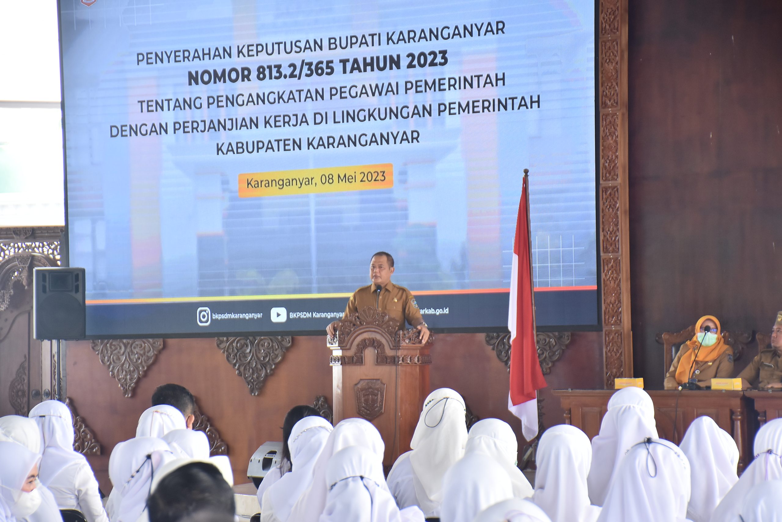 Penyerahan Surat Keputusan (SK) Pengangkatan Pegawai dengan Perjanjian Kerja(P3K) ini berdasarkan Keputusan Bupati Karanganyar Nomor 813.2/365 Tahun 2023 Tentang Pengangkatan Pegawai dengan Perjanjian Kerja dilingkungan Pemerintah Kabupaten Karanganyar. Surat Keputusan (SK) Pengangkatan Pegawai dengan Perjanjian Kerja(P3K) itu akan berlaku hingga lima tahun ke depan.
