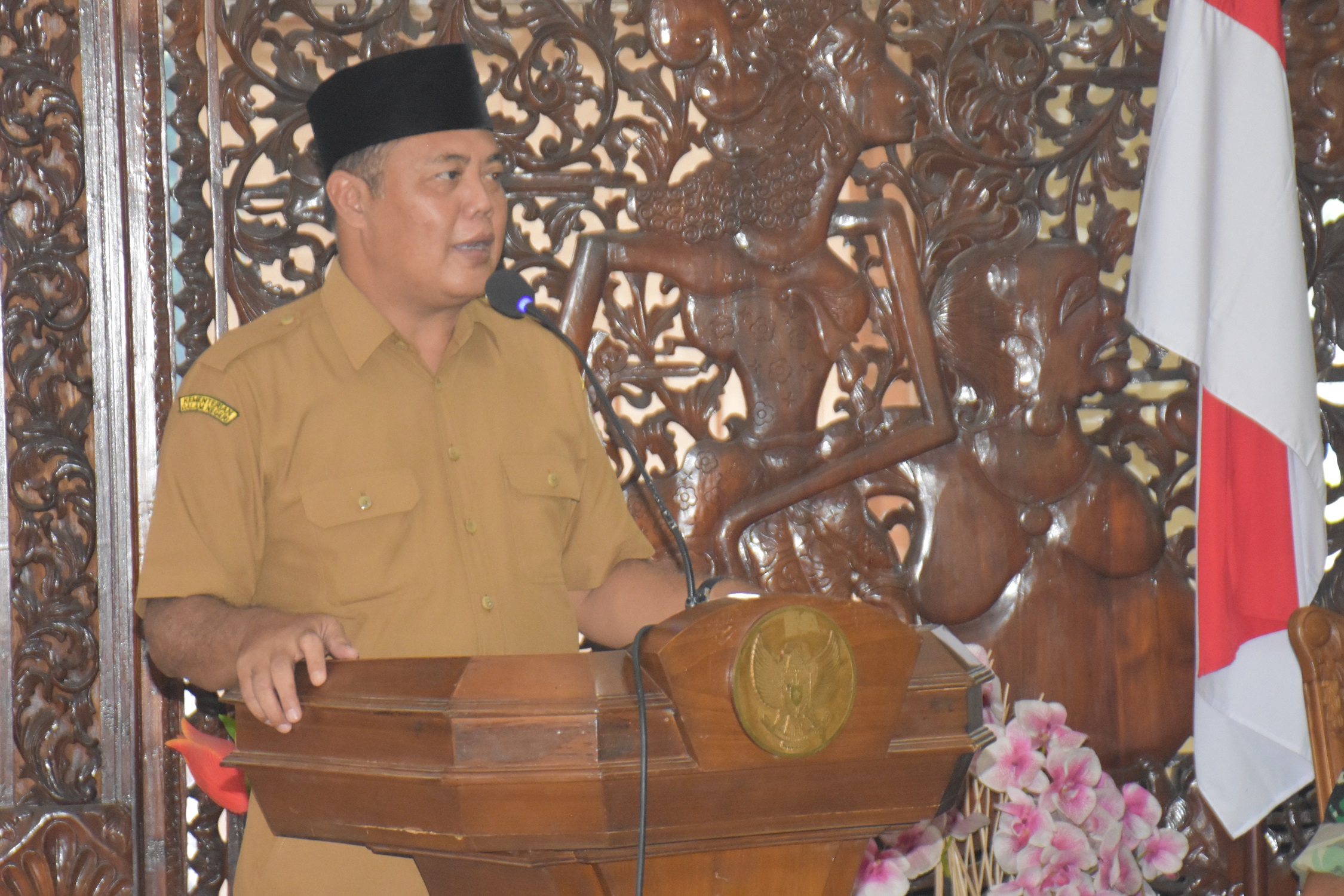 Bupati Karanganyar H. Juliyatmono saay berikan pidato sambutan dan tausiyah, haturkan ucapan terima kasih kepada Kantor Kementrian Agama(KEMENAG) Karanganyar yang sudah menyusun dan menyeleksi dengan sedemikian rupa untukpara calon jama’ah haji tahun ini yang akhirnya diputuskan memberangkatkan sebanyak 428 calon jama’ah haji.