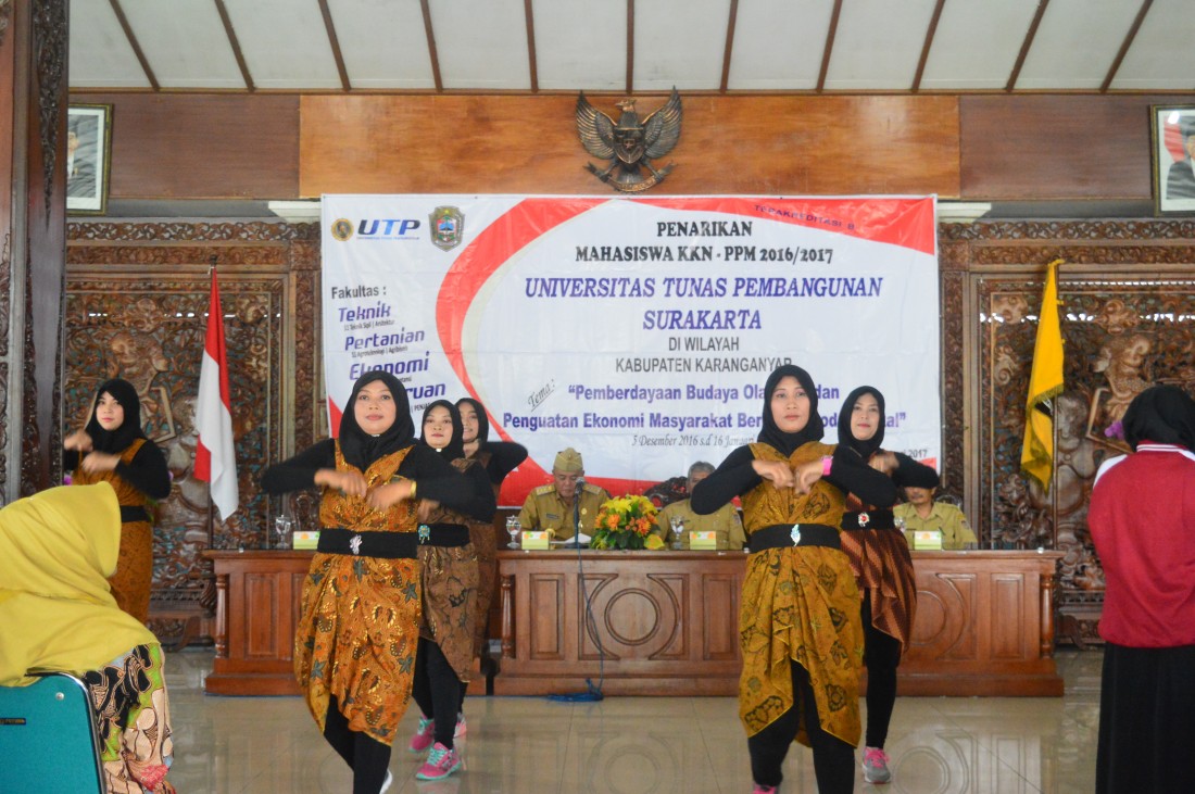 Penarikan sejumlah 433 mahasiswa KKN Universitas Tunas Pembangunan (UTP) Surakarta yang tersebar di tiga puluh desa di tiga Kecamatan yakni Kecamatan Jatiyoso, Jumapolo dan Matesih secara resmi dilakukan di Pendopo Rumah Dinas Bupati Karanganyar, Senin (16/01/2017).