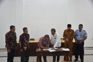 Bupati Karanganyar, Drs. H. Juliyatmono, M.M., M.H., menandatangani hibah tanah kepada Kemenkumham RI Wilayah Jawa Tengah, Jum’at (24/02) pagi.
