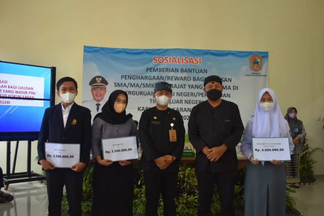 KARANGANYAR – Pemerintah memberikan penghargaan kepada siswa yang berhasil masuk ke Perguruan Tinggi Negeri (PTN) dan Perguruan Tinggi di Luar Negeri (PTLN) di Aula Ki Hajar Dewantara Dinas Pendidikan dan Kebudayaan Kabupaten Karanganyar pada Kamis (31/3) pagi.