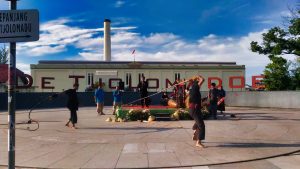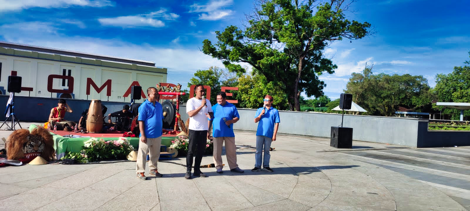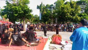 KARANGANYAR – Ada yang unik di Car Free Day (CFD) Colomadu pagi ini (27/11). Ratusan massa dari berbagai usia berkumpul tepat di depan De Tjolomadoe. Mereka datang dari segala penjuru lokasi CFD secara bersama – sama menyaksikan atraksi pertunjukan jaranan dan pecutan. Sesekali massa bersorak dan tertawa menyaksikan tingkah lucu penunggang jaran, lebih – lebih penunggang celeng. Inilah salah satu inovasi Diskominfo Karanganyar untuk lebih mendekatkan diri kepada masyarakat yaitu mengemas informasi kedalam bentuk pertunjukan/hiburan,yang bertajuk DISKOMINFO On The Street.