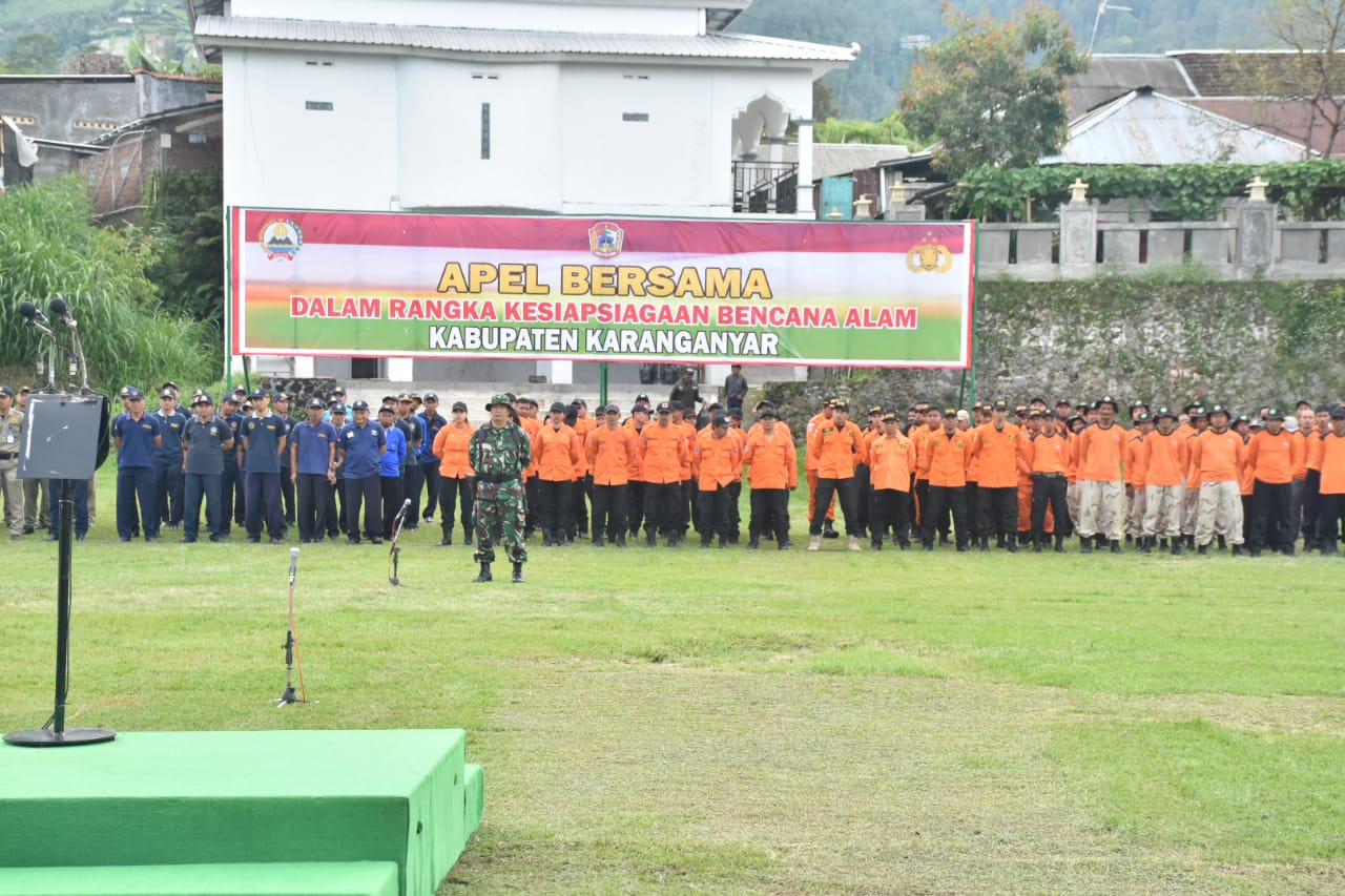 Bupati Karanganyar, Juliyatmono memimpin apel kesiapsiagan bencana alam di lapangan Desa Kemuning, Kecamatan Ngargoyoso