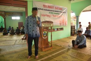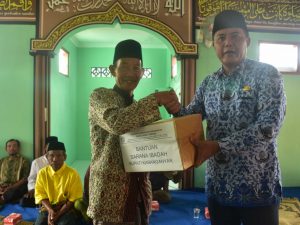 Bupati Karanganyar H. Juliyatmono setelah menyerahkan bantuan sarana ibadah kepada pengurus Masjid Makawi Dusun Tepus Desa Tamansari Kecamatan Kerjo.