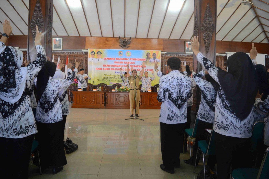 Keberhasilan guru dalam mendidik peserta didik tidak terlepas dari fokus dan bersama. Sebab dengan fokus pendidikan akan lebih terarah dan bersama bisa mengatasi kesulitan yang ada. Berbagai persoalan yang muncul akan bisa diatasi dengan fokus dan kebersamaan. Demikian disampaikan Wakil Bupati Karanganyar, Rohadi Widodo saat memberikan arahan dalam Seminar Nasional Pendidikan dalam rangka memperingati dan merayakan Hari Guru Nasional dan HUT PGRI ke 72 di Pendopo Rumah Dinas Bupati, Jumat (24/12).