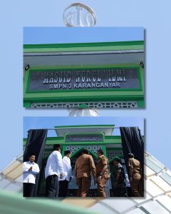 KARANGANYAR — Bupati Karanganyar Rober Christanto, S.E., M.M., bersama Wakil Bupati Karanganyar Adhe Eliana, S.E., meresmikan Masjid Nurul Ilmi di SMP Negeri 3 Karanganyar, Senin (29/12/2025). Peresmian ini menjadi momen bersejarah bagi civitas akademika sekolah sekaligus wujud dukungan Pemerintah Kabupaten Karanganyar terhadap penguatan pendidikan karakter dan keagamaan di lingkungan sekolah.