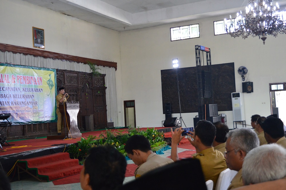 Hal tersebut disampaikan Bupati Karanganyar Juliyatmono ketika menghadiri halal bihalal Kelurahan, Kecamatan se Karanganyar, Senin siang (25/06) kemarin.