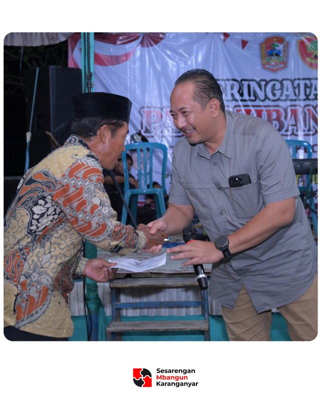 KARANGANYAR — Suasana halaman Kantor Balai Desa Jeruksawit pada Minggu malam (30/11/2025) dipenuhi semangat kebersamaan saat Paguyuban Linmas Desa Jeruksawit Kecamatan Gondangrejo memperingati Hari Ulang Tahun (HUT) ke-9 Linmas Desa Jeruksawit yang mengangkat tema “Bersama Kita Hebat, Bersatu Kita Kuat.” Bupati Karanganyar, H. Rober Christanto, S.E., M.M., hadir langsung dalam acara tersebut, didampingi Kepala Pelaksana BPBD Karanganyar dan Camat Gondangrejo.