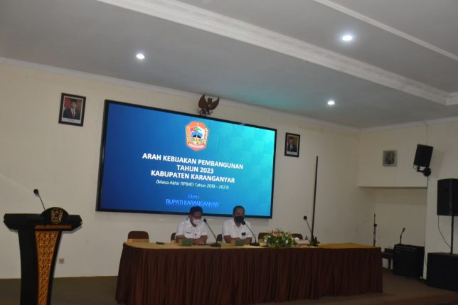 Karanganyar – Bupati Karanganyar, Drs. H. Juliyatmono, MM memimpin Rapat Koordinasi Arahan Kebijakan Pembangunan Tahun 2023, masa berakhirnya RPJMD 2018 – 2023 di Ruang Anthurium, Rumah Dinas Bupati Karanganyar, Rabu (19/01).