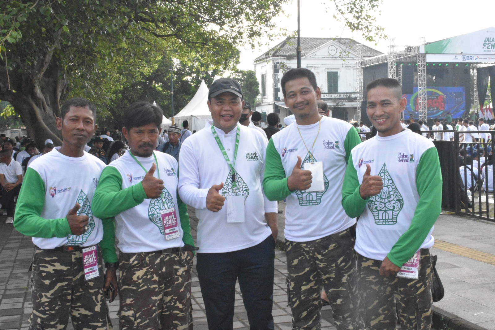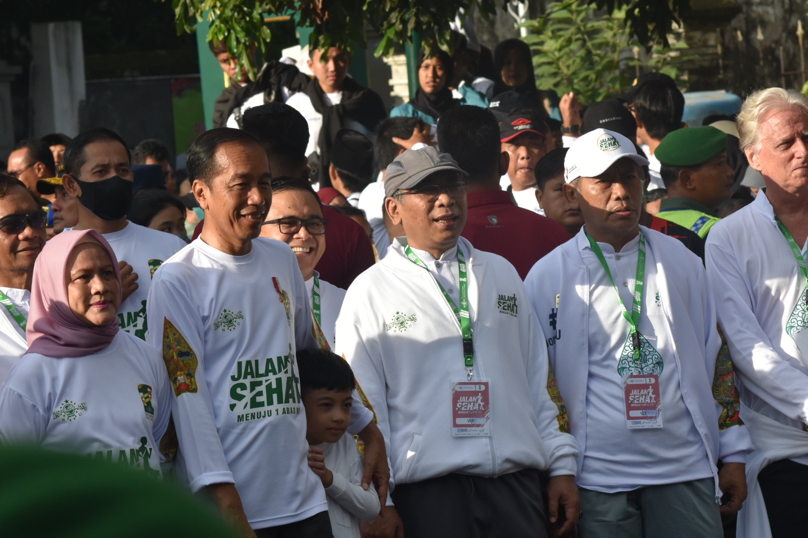Karanganyar – Bupati Karanganyar, Drs. H. Juliyatmono, M.M, M.H hadir dan mengikuti kegiatan Jalan Sehat Dalam Rangka HUT NU ke 100 di Lapangan Mangkunegaran, Surakarta, Minggu (22/01) pagi. Kegiatan jalan sehat ini merupakan salah satu rangkaian dari Pekan Olah Raga dan Seni (Porseni) NU 2023. Kegiatan juga diikuti oleh sejumlah tokoh negara. Tampak Presiden Republik Indonesia, Ir. Joko Widodo beserta ibu negara, Iriana dan cucunya, Jan Ethes mengikuti jalan sehat yang dimulai dari Pura Mangkunegaran, melewati Jalan Slamet Riyadi, dan kembali berakhir di Pura Mangkunegaran.