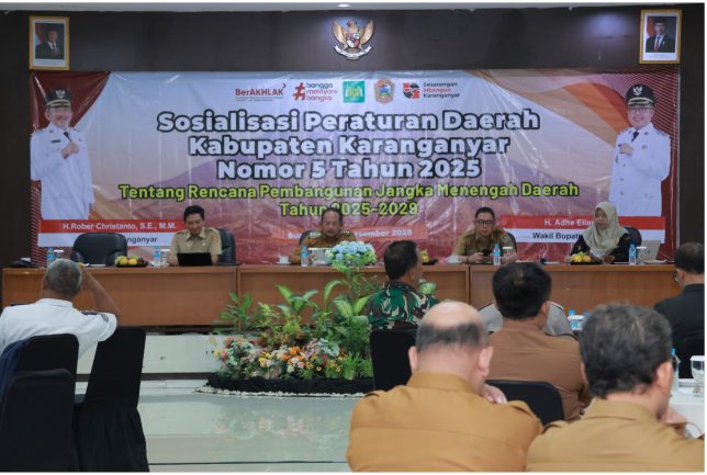 Sosialisasi tersebut dihadiri oleh jajaran pejabat di lingkungan Pemerintah Kabupaten Karanganyar, perangkat daerah terkait, serta perwakilan masyarakat sebagai bagian dari upaya memperkuat pemahaman bersama terhadap arah kebijakan pembangunan daerah lima tahun ke depan.