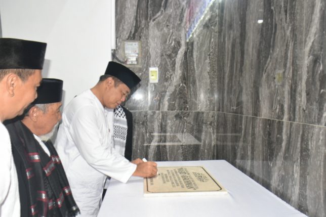 Sebagai simbol diresmikannya masjid tersebut, Bupati Karanganyar menandatangani prasasti didampingi oleh takmir Masjid Ar Rohman.