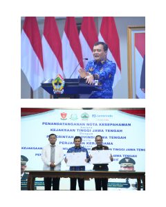 KARANGANYAR — Bupati Karanganyar, H. Rober Christanto, S.E., M.M., menghadiri kegiatan Penandatanganan Nota Kesepahaman (MoU) antara Kepala Kejaksaan Tinggi Jawa Tengah dengan Pemerintah Provinsi Jawa Tengah serta Penandatanganan Perjanjian Kerja Sama (PKS) antara Kepala Kejaksaan Negeri se-Jawa Tengah dengan Wali Kota dan Bupati se-Jawa Tengah tentang pelaksanaan pidana kerja sosial bagi pelaku tindak pidana. Acara tersebut digelar di Gedung Gradhika Praja, Kompleks Kantor Gubernur Jawa Tengah, Semarang, Senin (1/12/2025). Bupati hadir didampingi Kepala Kejaksaan Negeri Karanganyar, Kepala Bagian Hukum, serta Plt. Kepala Bagian Prokopim Setda Kabupaten Karanganyar.