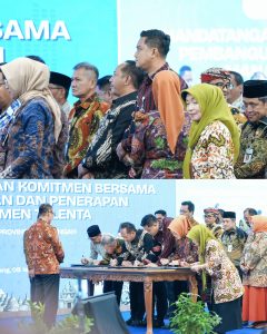 SEMARANG — Bupati Karanganyar H. Rober Christanto, S.,E, M.,M menandatangani Komitmen Pembangunan dan Penerapan Manajemen Talenta Aparatur Sipil Negara (ASN) bersama Gubernur Jawa Tengah dan para kepala daerah se-Jawa Tengah. Kegiatan tersebut dilaksanakan pada Kamis (8/1/2026) di Gedung Gradhika Bhakti Praja.