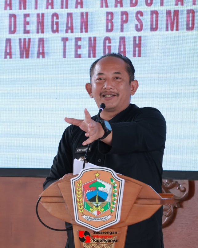 KARANGANYAR — Bupati Karanganyar H. Rober Christanto, S.E., M.M., secara resmi menutup Pelatihan Dasar Calon Pegawai Negeri Sipil (CPNS) Kabupaten Karanganyar Tahun 2025 di Pendopo Rumah Dinas Bupati, Kamis (11/12/2025). Penutupan tersebut turut dihadiri oleh Kepala BPSDMD Provinsi Jawa Tengah, Kepala BKPSDM Kabupaten Karanganyar, Pj. Sekretaris Daerah Kabupaten Karanganyar, dan Kepala BKD Karanganyar sebagai wujud dukungan penuh terhadap peningkatan kualitas aparatur sipil negara.