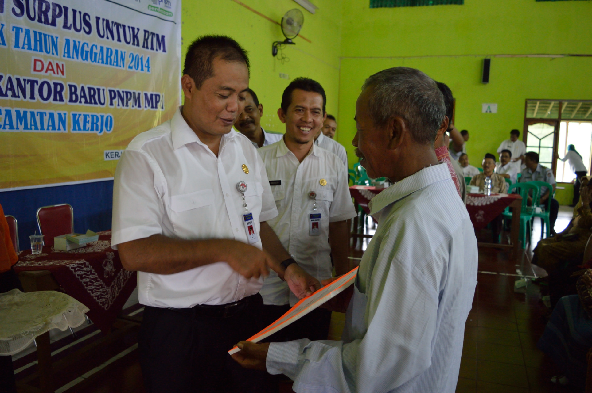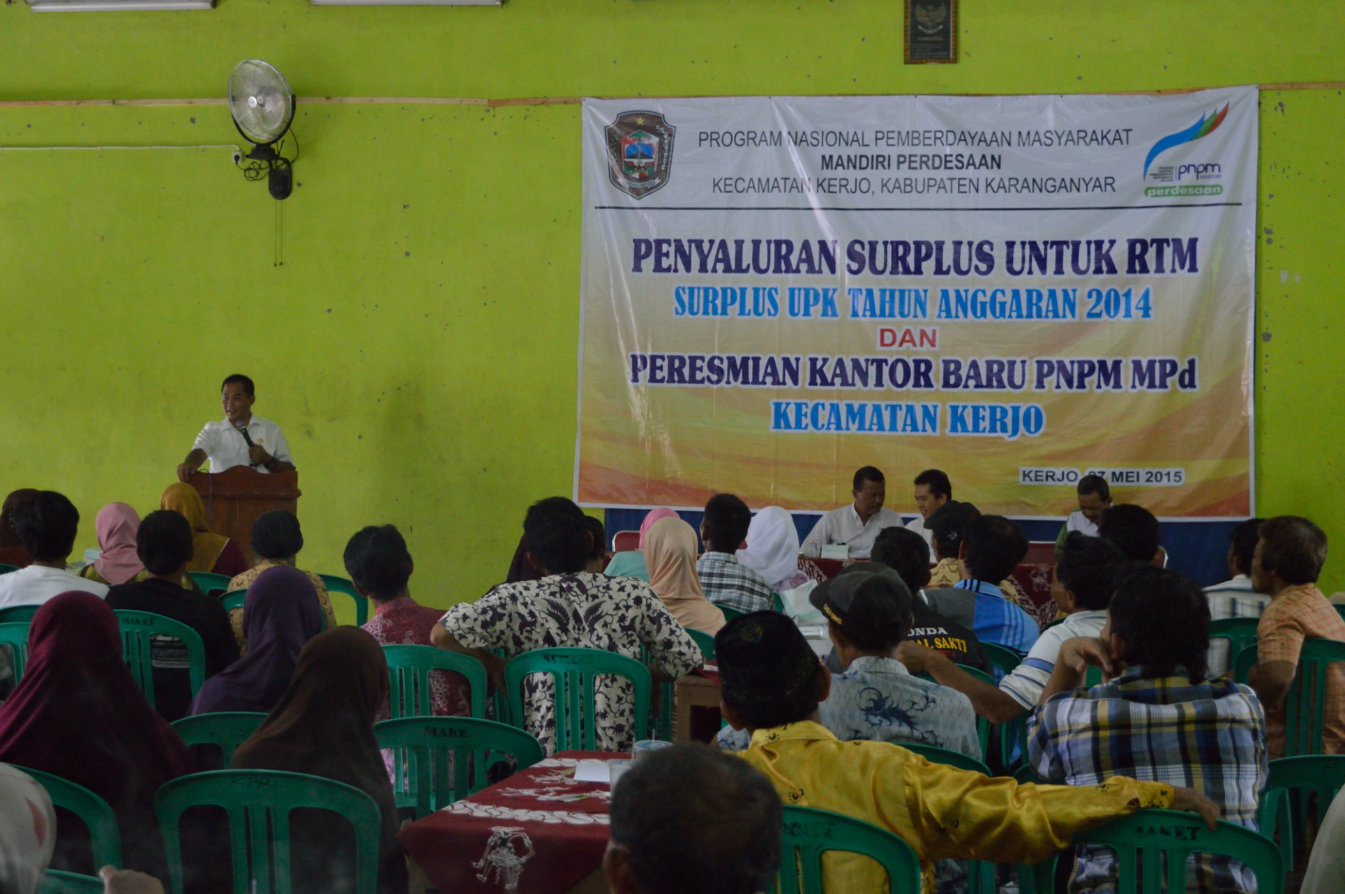 Bertempat di Gedung KPRI Rumaket Kerjo, Bupati dan Wakil Bupati Karanganyar didampingi SKPD terkait meresmikan Kantor Program Nasional Pemberdayaan Masyarakat Mandiri Pedesaan (PNPM MPd) Kecamatan Kerjo, Rabu Siang 27/05. Selain meresmikan kantor baru, juga disampaikan penyaluran bantuan dana hibah absolut tahun 2014 sebesar 174 juta yang diwujudkan dalam bantuan kambing sebanyak 42 ekor, Jambanisasi untuk 60 kartu keluarga, RTLH 7 rumah dan peralatan perbengkelan.