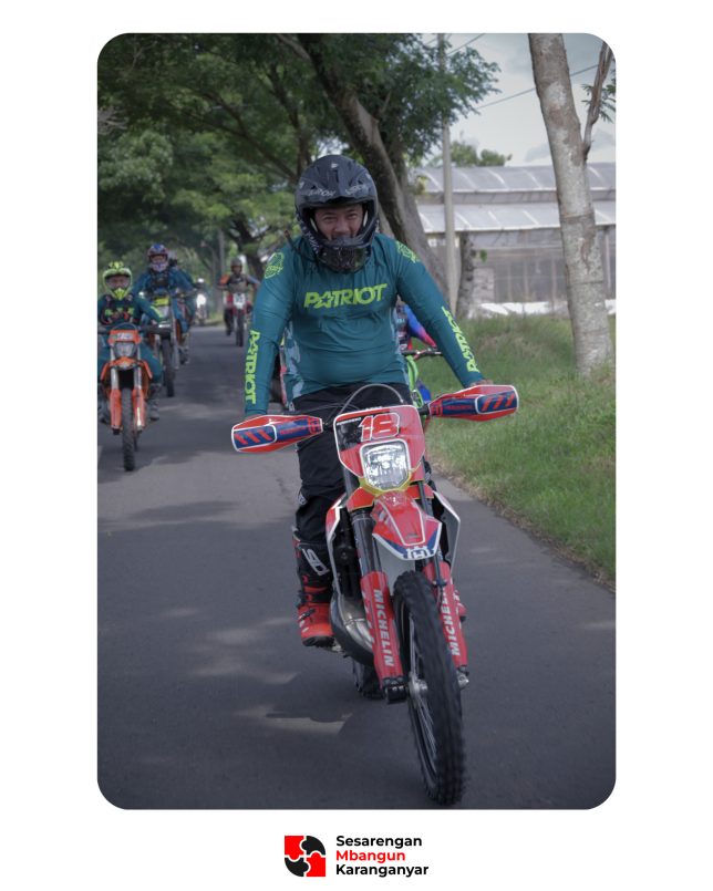 KARANGANYAR — Bupati Karanganyar H. Rober Christanto, S.E., M.M., didampingi Wakapolres Karanganyar, hadir memberangkatkan sekaligus ikut ambil bagian dalam gelaran Trail Temu Kangen PATRIOT (TKP 13) yang dilepas dari halaman Hotel Permatasari Tasikmadu menuju jalur trabas kawasan Bromo Delingan, Sabtu (6/12/2025). Kehadiran Bupati tidak hanya sebagai bentuk dukungan, tetapi juga menegaskan perhatian pemerintah daerah terhadap komunitas otomotif yang aktif menciptakan aktivitas positif di masyarakat.
