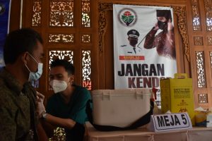 “Kita harapkan yang merantau tersebut telah divaksinasi sehingga herd imunity akan dapat tercapai dengan baik. Saya sudah meminta Dinkes untuk menggencarkan vaksinasi kepada 1000 orang per hari,” papar Juliyatmono usai memberikan arahan pada program serbuan vaksinasi (Jaksa Sahabat Petani) (Jastani) di Desa Kragan, Kecamatan Gondangrejo, Karanganyar, (30/09)