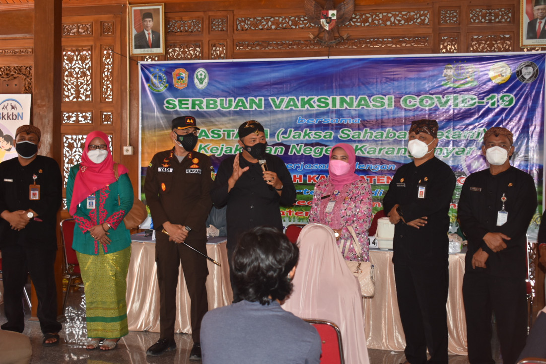 KARANGANYAR – Bupati Karanganyar, Juliyatmono meminta Dinas Kesehatan untuk menggencarkan vaksinasi sebanyak 1000 orang per hari. Diharapkan dengan gencaran vaksinasi tersebut maka Kabupaten Karanganyar dapat memenuhi target 70 persen sasaran yang telah divaksinasi. Hanya saja Program Vaksinasi untuk Kecamatan Jatiyoso tidak bisa dilaksanakan secara maksimal karena terkendala dengan kondisi adanya sebagian penduduk yang sedang merantau.