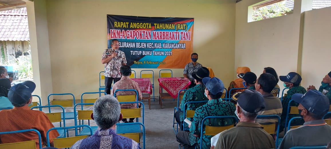KARANGANYAR – Gabungan Kelompok Tani (Gapoktan) Marbhakti Tani Kelurahaan Bejen, Kecamatan Karanganyar untuk mencari terobosan dari permasalahan yang ada. Diinvetaris permasalahaan yang muncul pada petani selanjutnya Bersama-sama dicarikan jalan keluar. Misalnya, waktu pupuk kemudian pupuk susah, saat panen harga menjadi turun dan lain sebagainya.