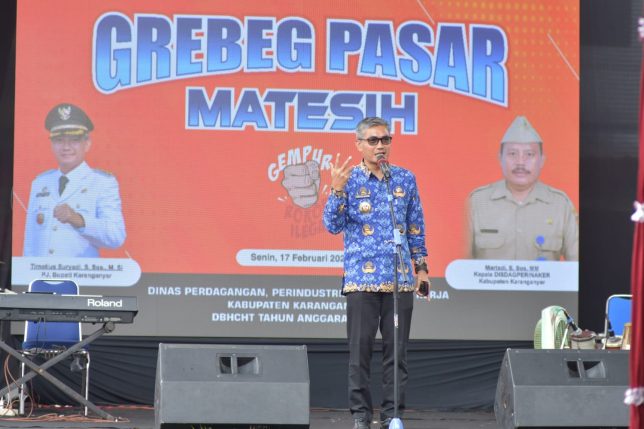 Karanganyar – Pemerintah Kabupaten Karanganyar kembali menggelar kegiatan Grebek Pasar sebagai upaya sosialisasi peraturan di bidang cukai kepada masyarakat. Kegiatan yang berlangsung di Pasar Matesih, Senin (17/2) siang ini dihadiri langsung oleh Penjabat (Pj.) Bupati Karanganyar serta sejumlah pejabat daerah dan perwakilan Bea Cukai Surakarta.
