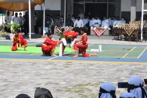 Peringataan hari santri di Ponpes Darul Quran ada aksi marching band dan atraksi pencak silat tapak suci. (hr/adt)