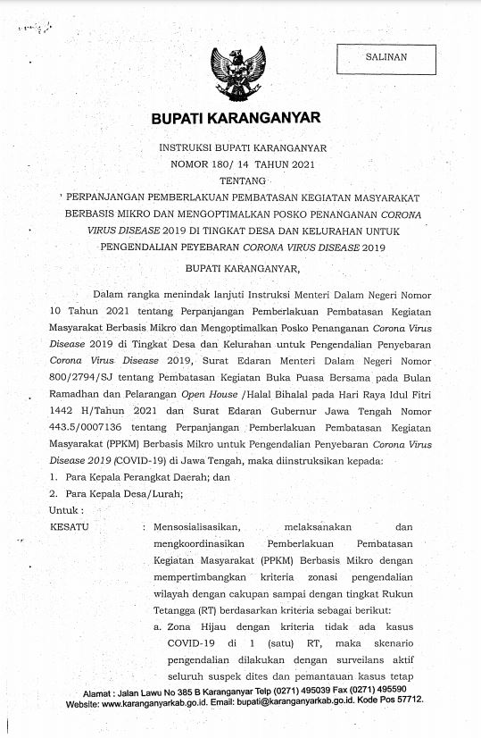 Instruksi Bupati Karanganyar Nomor 180/ 14 Tahun 2021 admin utama1 May 5, 2021 Download file lengkap disini