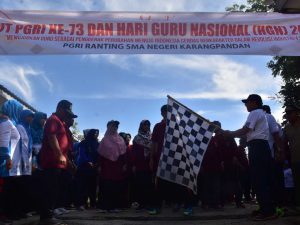 Camat Karangpandan yang dalam hal ini mewakili Bupati Karanganyar membuka Jalan Sehat Massal dalam rangka HUT PGRI ke 73 dan Hari Guru Nasional (HGN) tahun 2018 di lapangan SMA Negeri Karangpandan