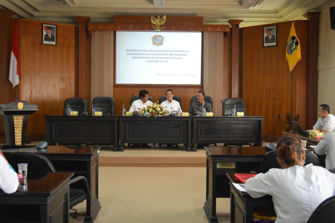 Pimpin Rakor Penanggulangan Kemiskinan : Wakil Bupati, Rohadi Widodo (tengah) didampingi Kepala Bappeda dan Kepala BPS Karanganyar, Rabu (31/8).