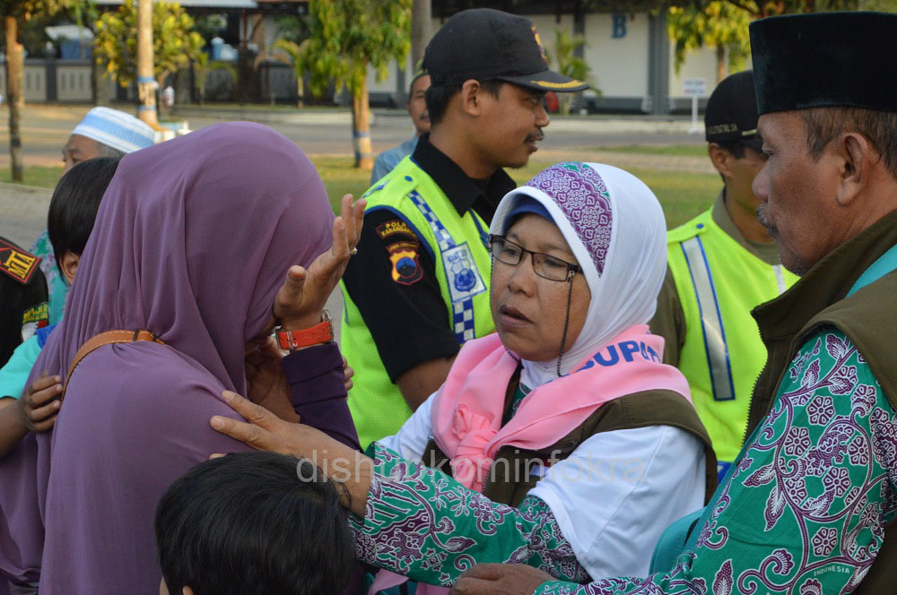 Sebelum memasuki bis, CJH itu berpamitan terlebih dahulu dengan Bupati dan tamu undangan. Selanjutnya 306 orang itu setelah semuanya memasuki bis, Bupati Juliyatmono melepas di depan Kantor Setda. pd