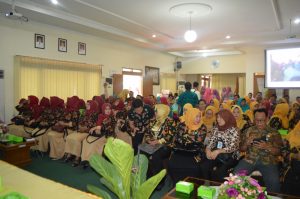 Para peserta kunjungan kerja diterima di Antorium Rumah Dinas Bupati Karanganyar oleh Tim Penggerak PKK Kabupaten Karanganyar.