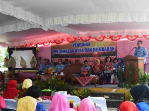 Asisten Pemerintah Setda Karanganyar, Bachtiyar Syarif saat memberikan sambutan dihadapan tim verifikasi lomba desa dan kelurahan serta undangan.