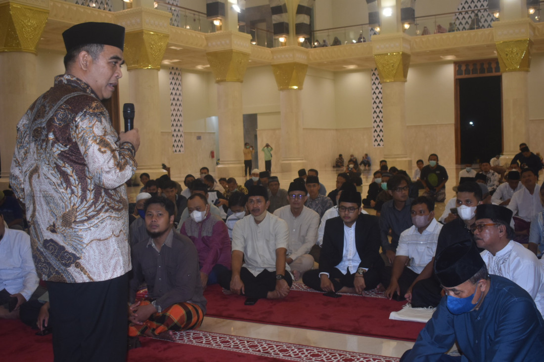 “Saya merasakan pertama kali masuk ke bangunan ini seperti di masjid Madinah, saya berdoa semoga pimpinan Kabupaten Karanganyar Bupati dan Wakil Bupati serta masyarakat mendapatkan keberkahan dari adanya pembangunan masjid ini,” kata Ahmad Muzani saat memberikan Kultum usai pelaksanaan sholat tawarih di Masjid Agung Madaniyah, Karanganyar.