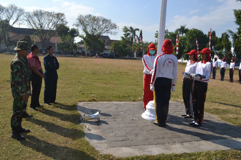 Karanganyar. Sekretaris Daerah (Sekda) Karanganyar, Samsi, melihat langsung pelaksanaan latihan Pasukan Pengibar Bendera Tanah Air (Paskibrata) Kabupaten Karanganyar menjelang Upacara HUT Proklamasi Kemerdekaan 17 Agustus 1945 ke 68 Republik Indonesia Tahun 2013, di Alun-alun, Rabu (14/08). Anggota Paskibraka Karanganyar digembleng fisik dan mental oleh purna Paskibraka dan anggota Kodim 0727 Karanganyar.