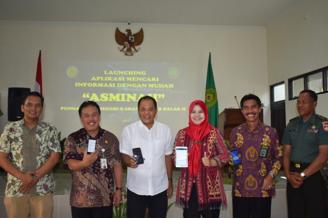 Bupati Karanganyar, Wakil Kepala Pengadilan Negeri Karanganyar beserta tamu undangan dalam acara Launching Aplikasi Mencari Informasi dengan Mudah ASMINAH di Ruang Sidang Kartika Pengadilan Negeri Karanganyar