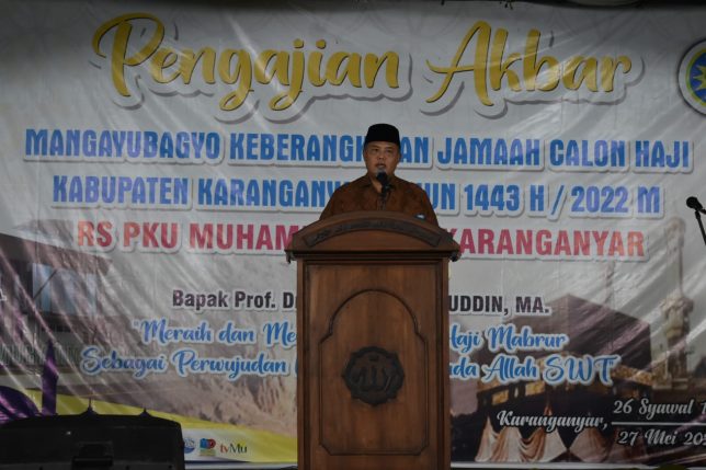 KARANGANYAR – Bupati Karanganyar Drs. H. Juliyatmono, MM menghadiri acara Pengajian Akbar sekaligus Mangayubagyo keberangkatan Calon Jamaah Haji Kabupaten Karanganyar Tahun 2022 di Halaman Parkir Rumah Sakit PKU Muhammadiyah Karanganyar, Desa Papahan, Tasikmadu, Jumat (27/05).