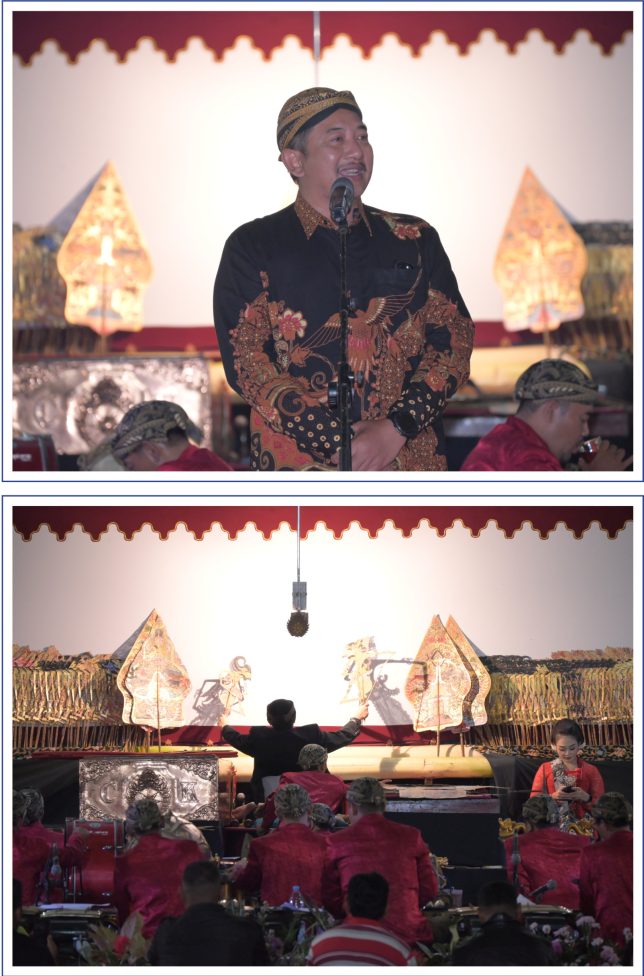 Pementasan dibawakan dalang ternama Ki Cahyo Kuntadi dengan lakon “Tripama”, sebuah kisah yang memuat teladan kepemimpinan, keberanian, dan pengabdian melalui figur-figur ksatria yang menjadi panutan. Sejak awal pertunjukan, suasana pendopo terasa hangat—alunan gamelan, tembang sinden, dan tata panggung yang rapi menyatu dengan antusiasme masyarakat, pegiat seni, dan undangan yang memadati area pertunjukan.