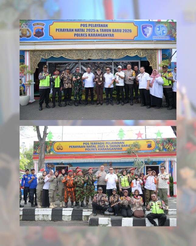 KARANGANYAR — Bupati Karanganyar H. Rober Christanto, S.E., M.M., bersama Wakil Bupati Karanganyar H. Adhe Eliana, S.E., serta jajaran Forum Koordinasi Pimpinan Daerah melaksanakan pengecekan Pos Pengamanan (Pos Pam) Operasi Lilin Candi Tahun 2025, Rabu (24/12/2025).