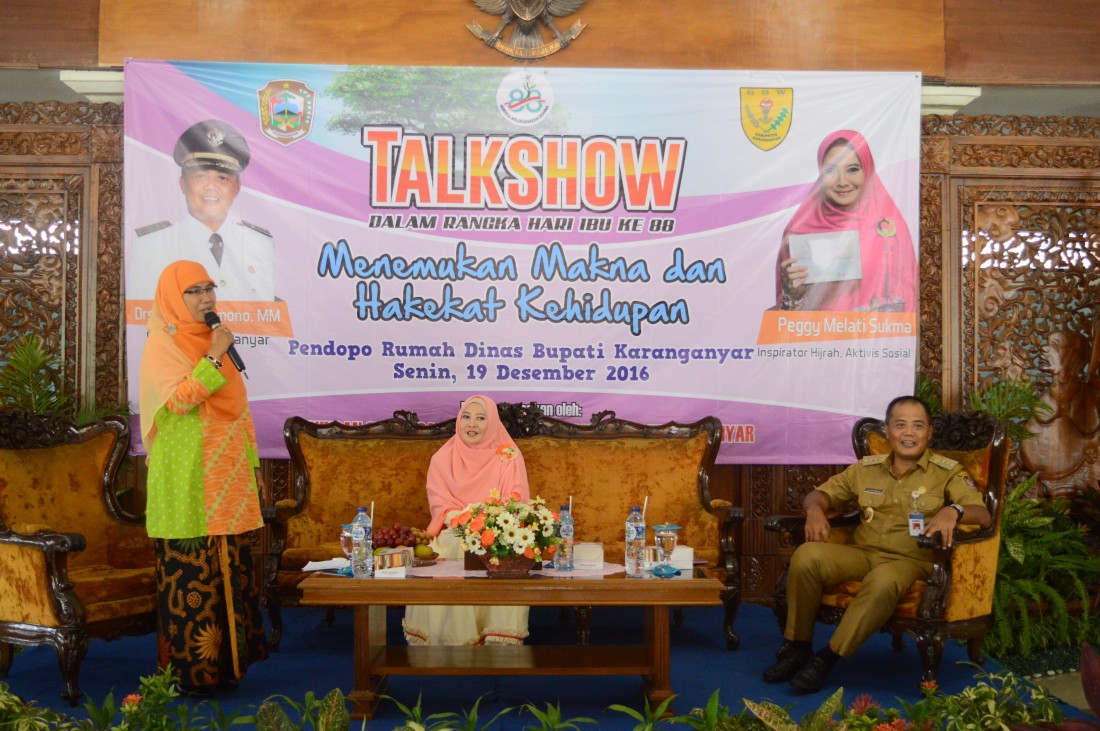 Dalam rangka memperingati Hari Ibu ke-88 yang jatuh pada 22 Desember mendatang, Gabungan Organisasi Wanita (GOW) Kab. Karanganyar menggelar Talk show Bupati bersama Peggy Melati Sukma, Senin (19/12/2016) di Pendopo Rumah Dinas Bupati.