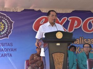 Bupati Karanganyar Drs.H.Juliyatmono.M. memberikan sambutan dalam acara pembukaan Expo UKM di Lapangan Edu Park
