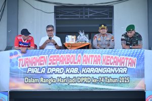 Karanganyar, Sekretaris Daerah Kabupaten Karanganyar, Timotius Suryadi, S.Sos., M.Si. mewakili Bupati Karanganyar, secara resmi membuka Turnamen Sepak Bola Antar Kecamatan memperebutkan Piala DPRD dalam rangka memperingati Hari Ulang Tahun ke-74 Dewan Perwakilan Rakyat Daerah (DPRD) Kabupaten Karanganyar di Stadion Angkatan 45