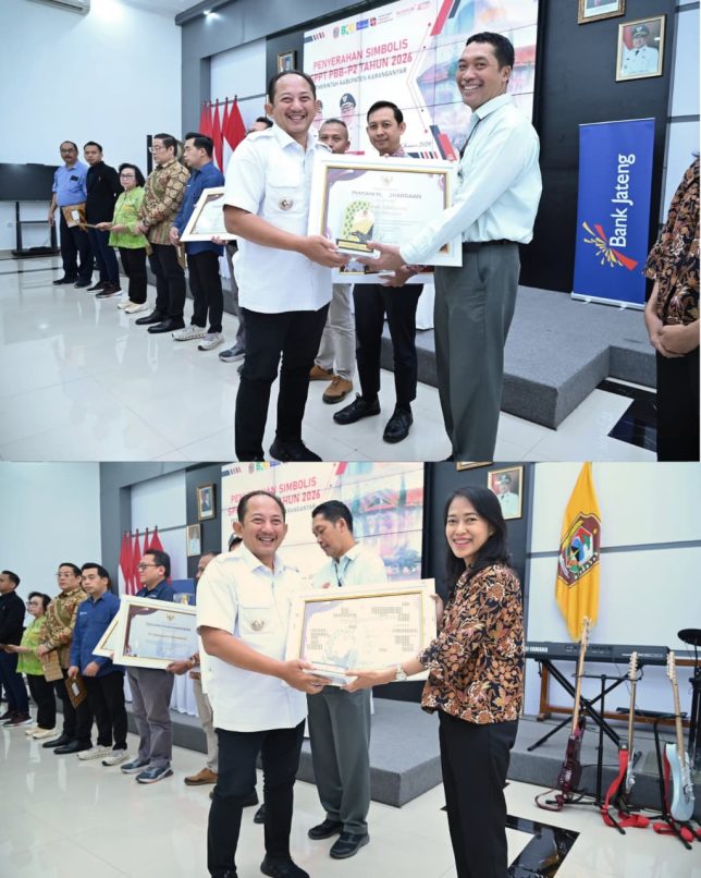 Pada kesempatan tersebut, dilakukan penyerahan simbolis penghargaan kepada wajib pajak yang tertib, serta penerimaan simbolis SPPT PBB-P2 Tahun 2026. Kegiatan dilanjutkan dengan pembayaran PBB-P2 secara simbolis oleh Bupati Karanganyar melalui aplikasi Bima Mobile Bank Jateng.