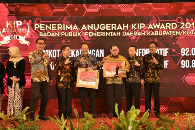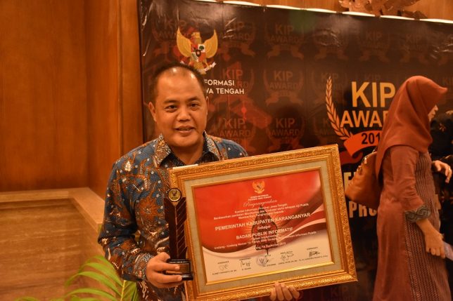 Bupati Karanganyar menerima penghargaan Anugerah KIP Award 2019 Kategori Badan Publik Pemerintah Kabupaten/Kota dengan predikat “Informatif” di Hotel Patra Jasa