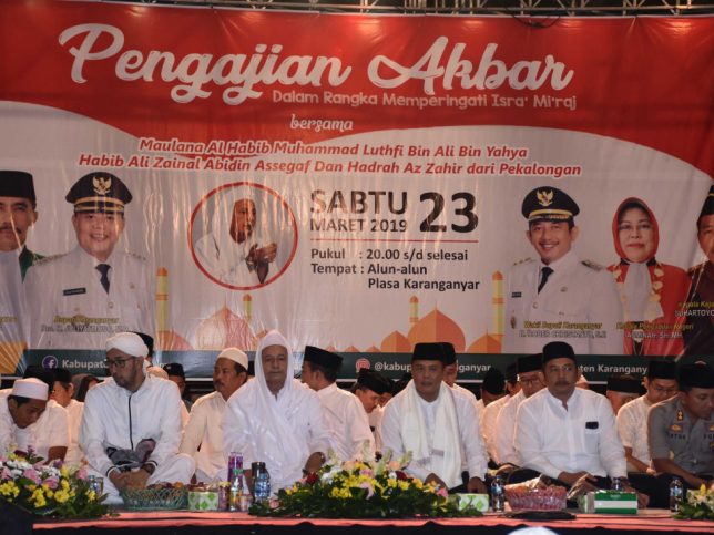 Bupati Karanganyar, Juliyatmono bersama jajaran forkominda dalam pengajian akbar dalam rangka Isra Miraj Nabi Muhammad SAW di Plasa Alun alun Karanganyar