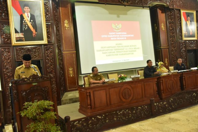 Penjelasan Mengenai 12 Raperda Kepada Para Wakil Rakyat Di DPRD admin utama1 May 14, 2019 12 raperda tersebut selanjutnya akan dibahas di tingkat DPRD Kabupaten Karanganyar. “Beberapa raperda memang harus dibahas di tingkat DPRD Karanganyar. Kami berharap segera dibahas dan diputuskan,” papar Bupati Karanganyar, Juliyatmono