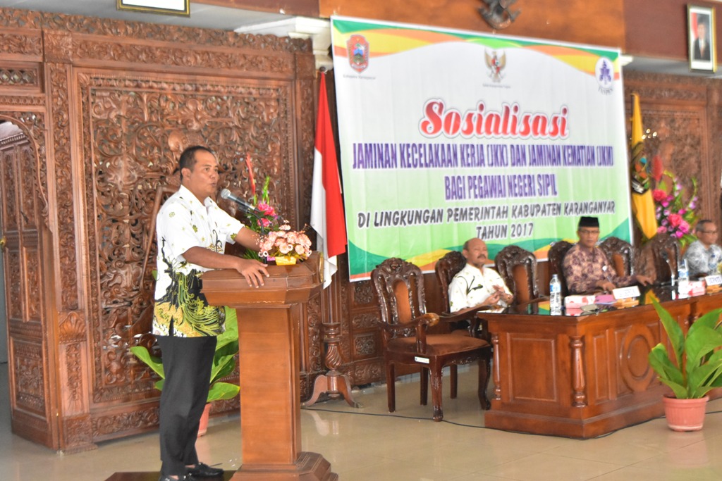 Pemerintah Kabupaten Karanganyar mengadakan sosialisasi Jaminan Kecelakaan Kerja (JKK) dan Jaminan Kematian (JKM) bagi Pegawai Negeri Sipil (PNS) Kabupaten Karanganyar, yang diadakan di Pendopo Rumah Dinas Bupati Karanganyar pada Kamis (09/11/2017).