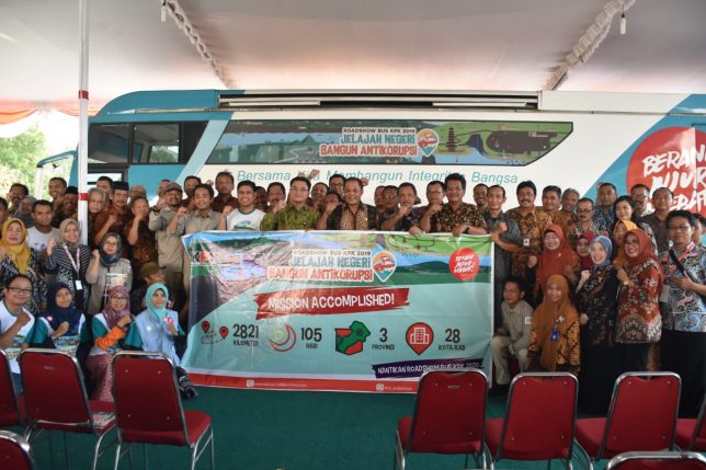 Penutupan Roadshow Bus KPK 2019 Jelajah Negeri Bangun Antikorupsi admin utama1 October 2, 2019 Kasatgas Dikdasmen Direktorat Pendidikan dan Pelayanan Masyarakat KPK Guntur Kusmeiyano memberikan sambutan pada penutupan Roadshow bus KPK di Karanganyar Acara ditutup dengan foto bersama di depan bus KPK.