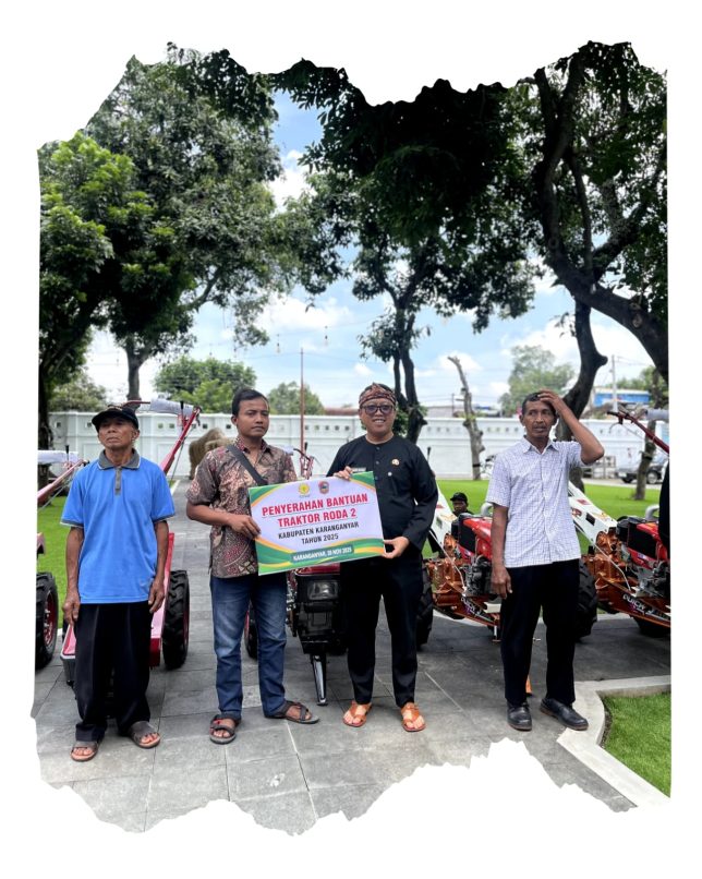 Karanganyar, 20 November 2025 — Pemerintah Kabupaten Karanganyar menggelar penyerahan bantuan alat dan mesin pertanian (alsintan) serta hibah uang bidang peternakan kepada kelompok tani, Kamis (20/11/2025), bertempat di Rumah Dinas Bupati Karanganyar. Bantuan tersebut berasal dari Kementerian Pertanian melalui Wakil Menteri Pertanian, dengan dukungan Presiden Republik Indonesia, Prabowo Subianto.