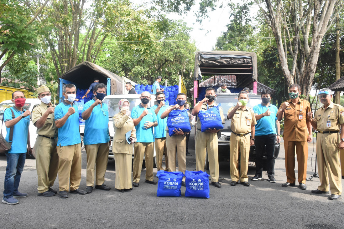 KORPRI Karanganyar menyalurkan 9000 paket sembako kepada masyarakat terdampak covid-19.